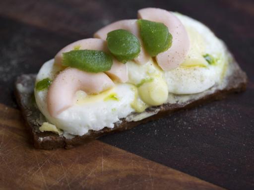 Æg og rejer med mayonnaise, agurk og karse (cremet)